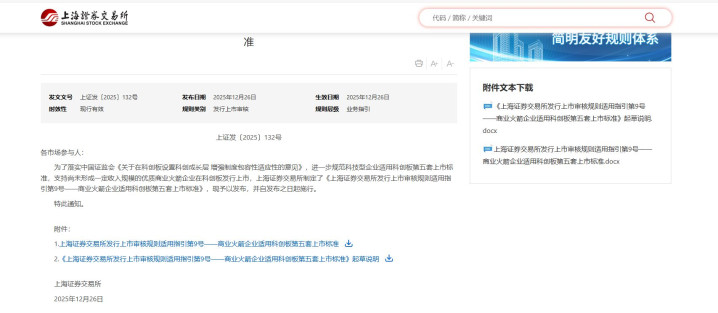 12月26日易投投,上交所发布《上海证券交易所发行上市审核规则适用指引第9号——商业火箭企业适用科创板第五套上市标准》(下称《指引》),旨在推进科创板第五套上市标准在商业航天等领域扩围工作,加快推进商业航天创新发展、主动服务航天强国战略。